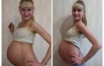 Если вы заметите, что стали весить намного больше, то это является поводом для обращения к врачу. Резкий скачок веса может говорить об образовании внутренних отеков. Живот на этом сроке уже солидный, дно матки располагается на ладонь выше пупка.