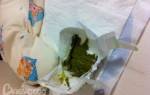 - Зеленый стул. Это далеко не всегда патология. Первые недели жизни у ребенка может быть зеленоватый стул. Также «зелень» появляется при введении прикорма. Но если стул заметно зеленый, жидкий, в нем видны комочки, это признаки нарушения работы кишечника.