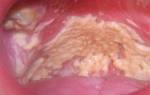 - Молочница ротовой полости. В основном наблюдается у детей. Редко появляется у взрослого человека после орального секса с заражённым партнёром.