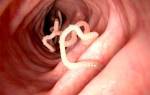 Самих аскарид можно обнаружить в кале – они выглядят как черви круглого сечения, заостренные по краям. Оттенок глистов при этом изменяется от желтого до розового, а длина достигает 40 см. Отличие аскарид – они развиваются без промежуточного хозяина около 16-17 дней. Только после этого они становятся опасными для человека. При попадании внутрь оболочка яйца растворяется, а глист выходит в благоприятную для него среду. Заболевание при этих гельминтах называется аскаридозом.